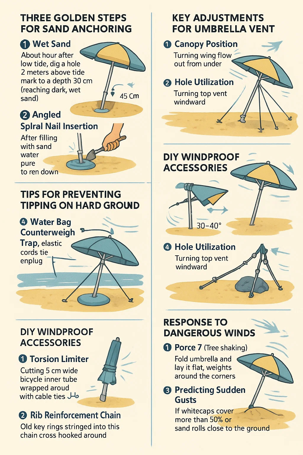 Berikut ini adalah tip praktis pemasangan untuk memastikan a payung pantai stabil dan tahan angin: